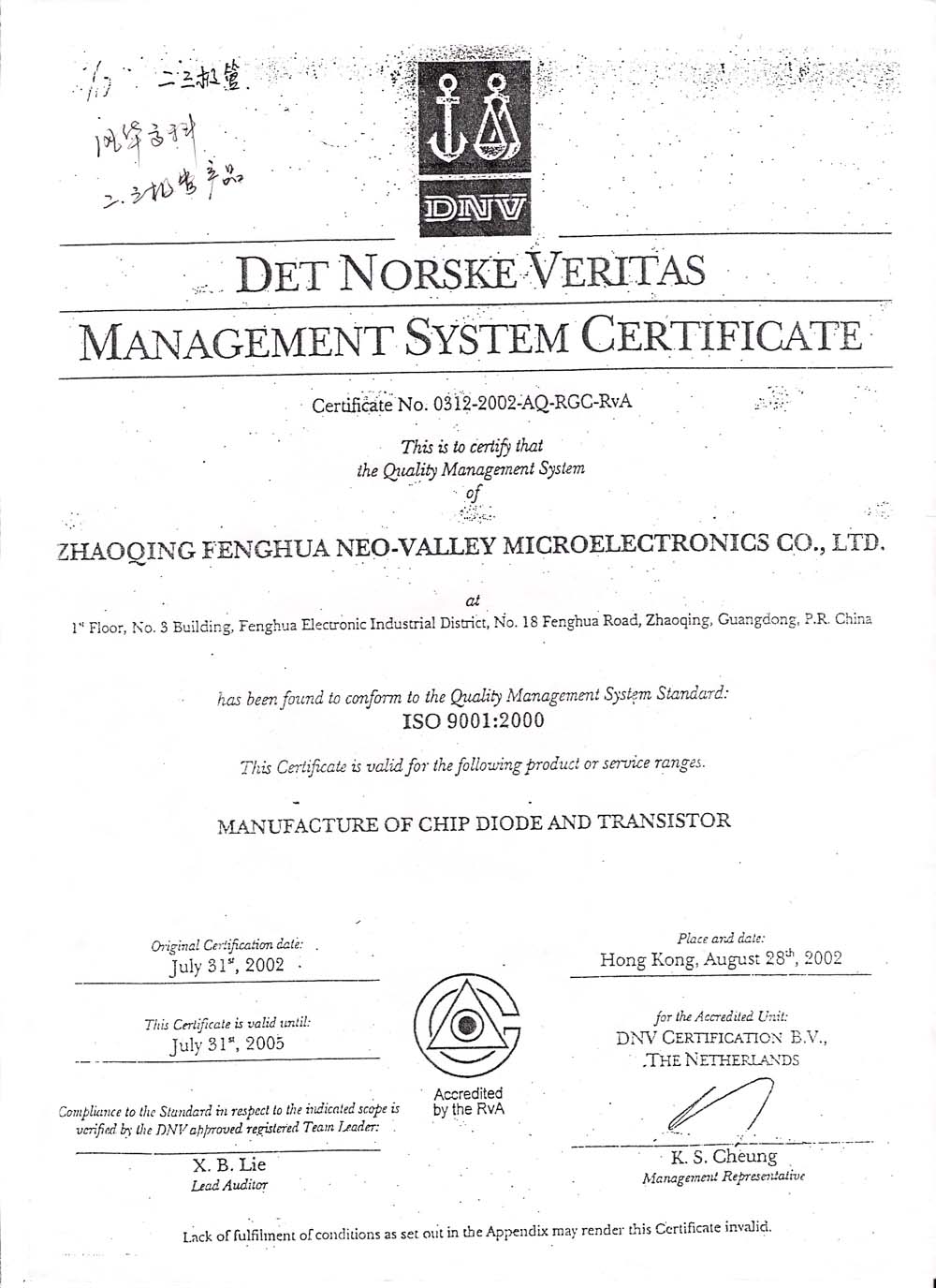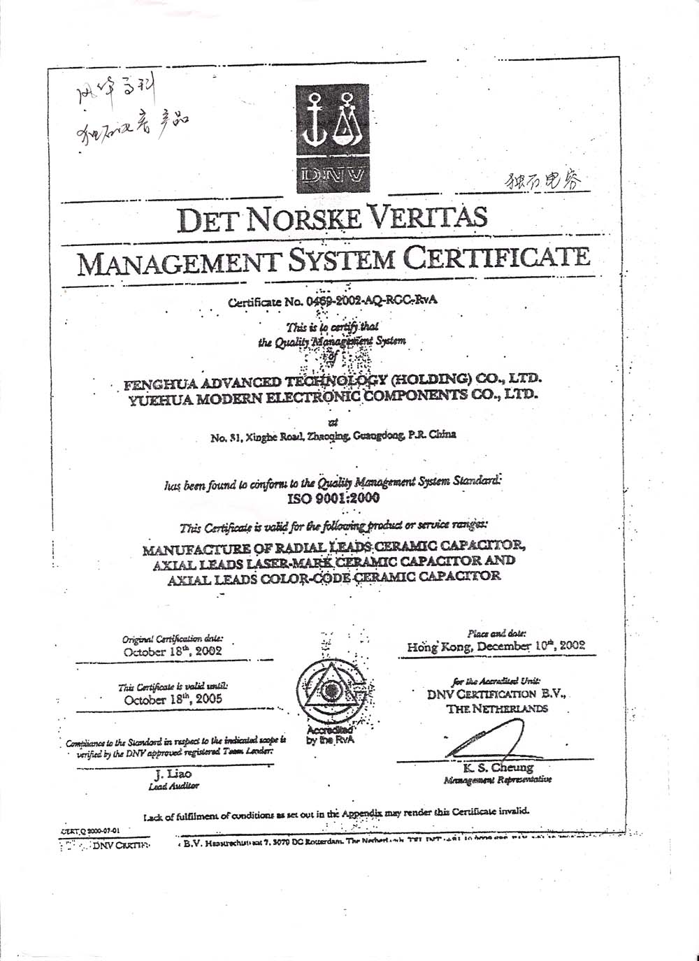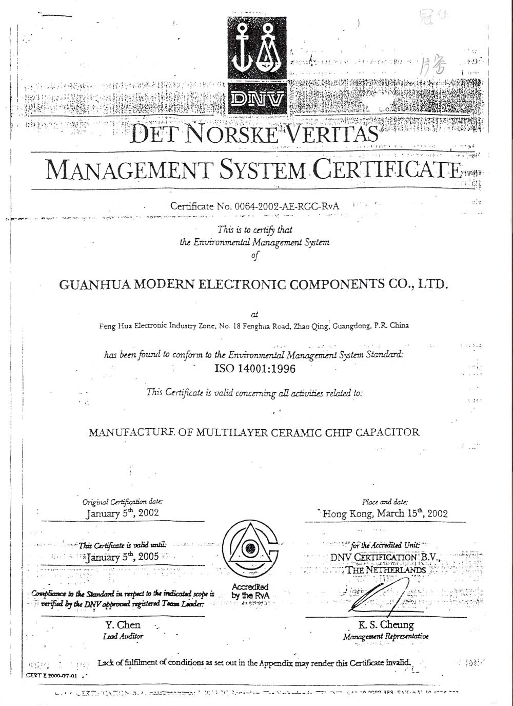 风华高科是全球贴片被动元器件排名八强的知名企业 ,早在2000之前年就实现了贴片电容,贴片电阻,贴片电感,贴片二极管,贴片三极管,贴片磁珠,贴片磁珠排,贴片功率电感,贴片钽电容,贴片晶振,贴片电解电容等系列产品的无铅化和标准化,通过了ISO9000和ISO1400认证。 同时,南宫ng28半导体作为风华高科直接授权代理,风华高科也为其提供了相关的资质文件 以下图片可点击放大。